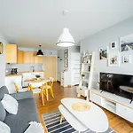 Apartamento vem com equipamentos para café e chá, ferro de engomar, casa de banho à parte nos quartos. A propriedade também tem 1 casas de banho. O apartamento Apartament Scandi Rybacka tem 1 camas. As casas de banho privadas têm zonas de duche, chuveiro e chuveiros de corrediça, bem como lençóis de banho, toalhas e secador de cabelo.
